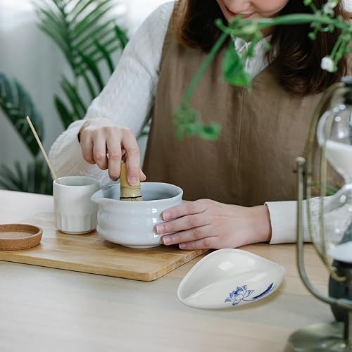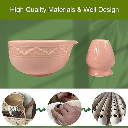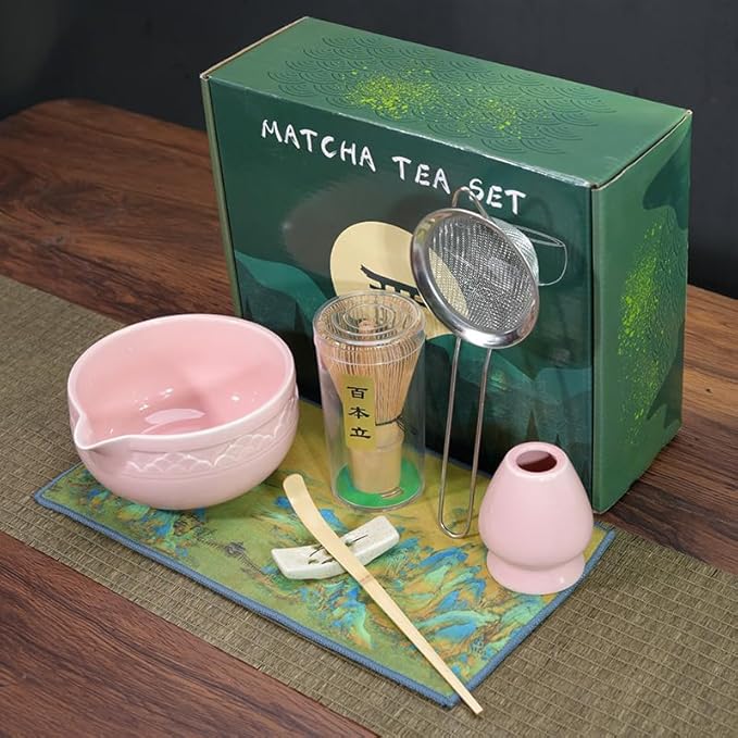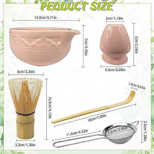 BILYSKEP Lot de 7 sets de table à matcha rose - Balai à matcha - Bol à matcha, pelle, passoire, porte-balai à matcha, porte-fouet à matcha