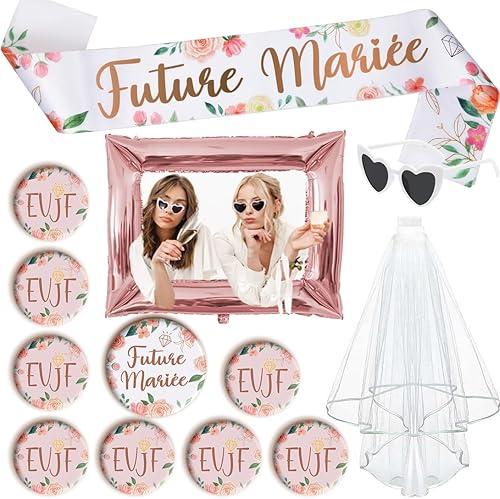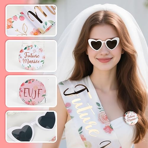 EVJF Accessoire,Future Mariée Badge,EVJF Echarpe Lunette Voile,Accessoire Enterrementde Vie de Jeune Fille pour Team Bride,Bride to Be Décoration,Future Mariée Kit EVJF