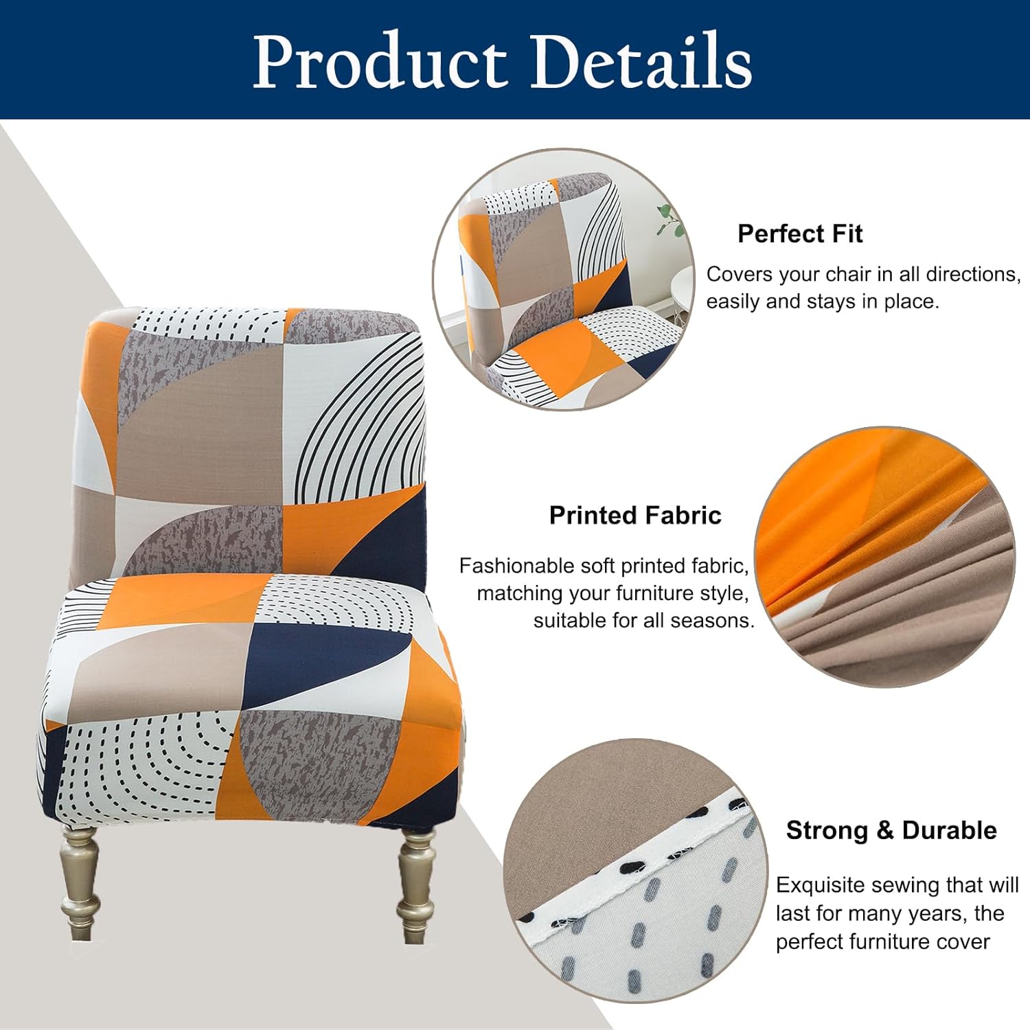 YOPOIY Imprimé Housse De Fauteuil sans Accoudoirs, Extensible Housse De Fauteuil sans Accoudoirs Doux Lavable Amovible Housse pour Fauteuil Crapaud Housses De Protection pour Meubles -5-One Size