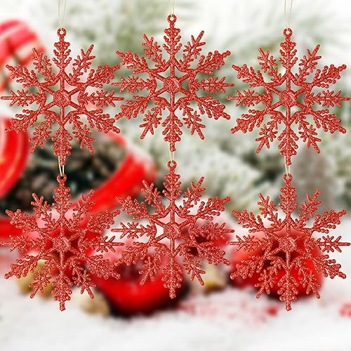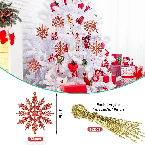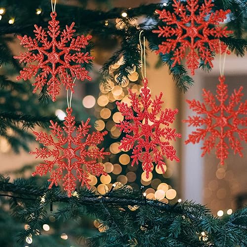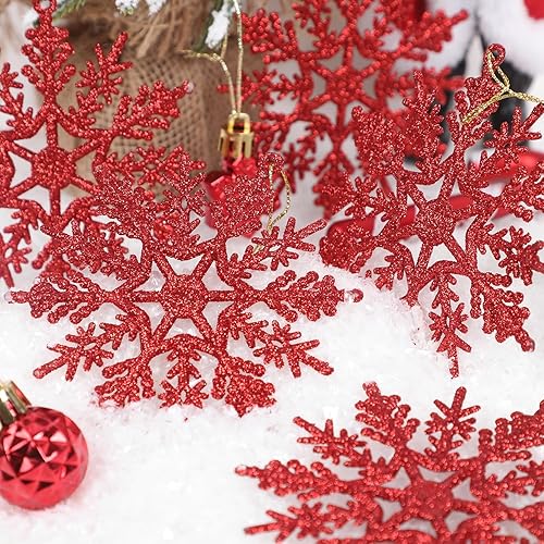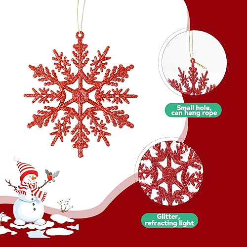 SULOLI 12pcs Pendentif de Noël Flocon de Neige,10cm Décorations à Suspendre avec Flocon de Neige Ornements Sapin de Noël Décorations de Noël (Rouge)