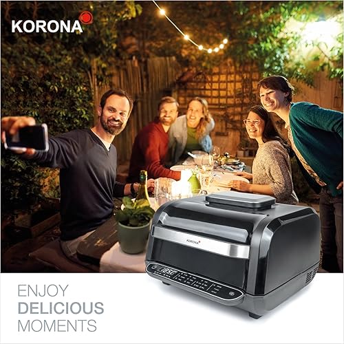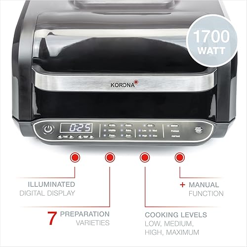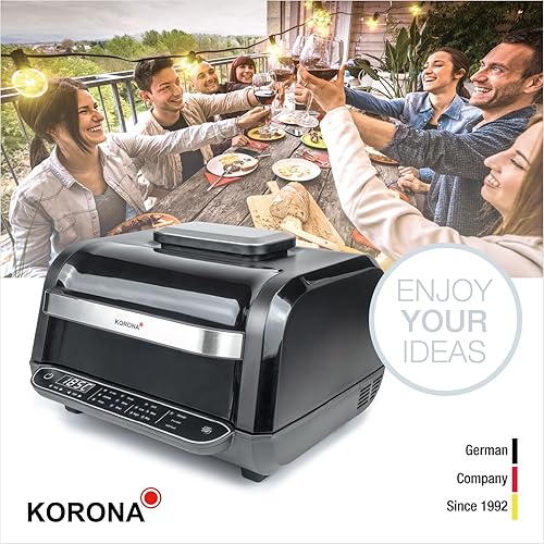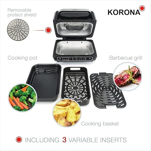 Korona 46160 Barbecue électrique |multifonctions 8 en 1| Friteuse à air chaud, four, four à pizza, fonction rôtissage, gril |4 niveaux de cuisson | Gril, panier de cuisson et marmite| Nettoyage facile
