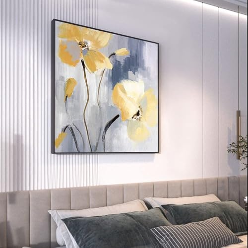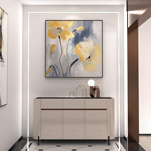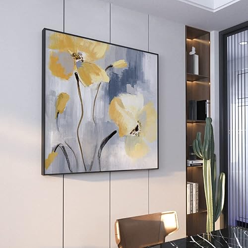 Tableau De Peinture Sur Toile, Vintage Jaune Gesang Bourgeons De Fleurs Art Abstrait Oeuvre Moderne Sans Cadre Peint À La Main Peintures À L'Huile Sur Toile Mur Art Pour Salon Chambre Bureau Déc