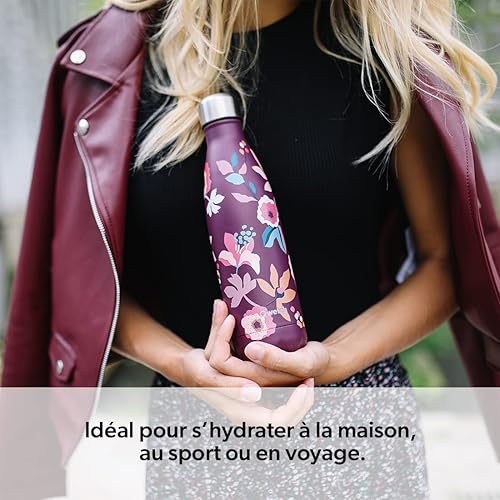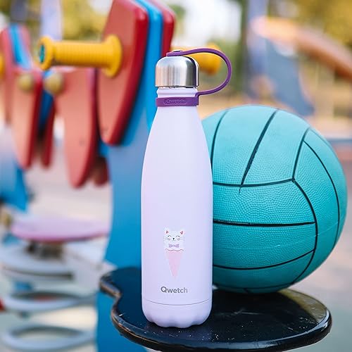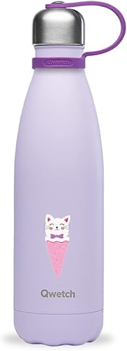 Qwetch - Bouteille Isotherme Kids Violet 500ml - Gourde Nomade Inox - 24h Froid et 12h Chaud - Etanche, Sans BPA & Réutilisable - Gourde isotherme pour Sport, Voyage, Bureau, Randonnée