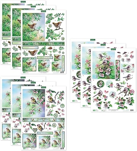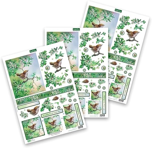 Katy Sue Feuilles de découpage 3D Oiseaux et fleurs printanières pour la fabrication de cartes Contient 9 feuilles de papier Katy Sue Wren en fleur de mai, oiseaux en fleur et chardonneret en cerisier
