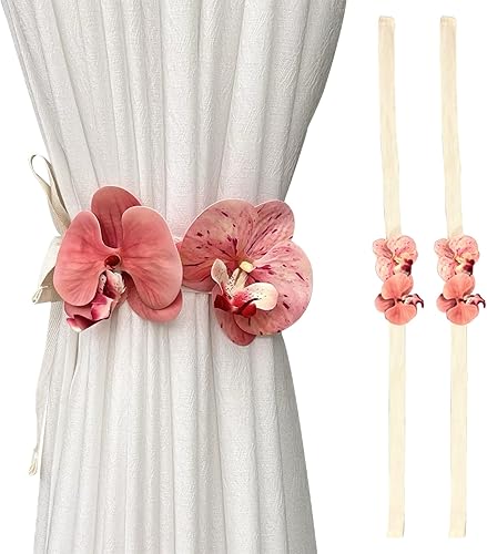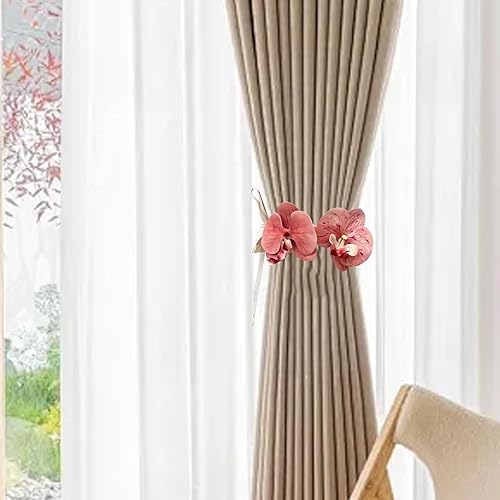 FOSDICK 2 Pièces Attache Rideau Corde, Fleur Embrasse pour Rideaux, Embrasse Rideau Phalaenopsis, Bohème Embrasses à Rideaux, Embrase de Rideaux pour La Maison, Le Bureau Décoration (Rose)