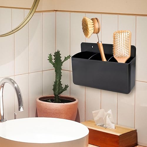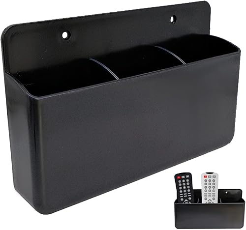 Mritrit Support de Télécommande avec 3 Compartiment, Porte Telecommande Mural Adhésif, Rangement Telecommande TV, Support Universel Télécommande pour Maison Bureau école (Noir)