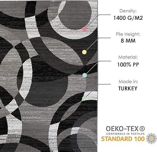 Carpeto Rugs Tapis Salon Moderne Motif Geometrique - Tapis Grande Taille de Chambre Adulte Moderne à Poils Ras - Moquette pour Chambre et Salon - Rug - Gris - 160 x 220 cm