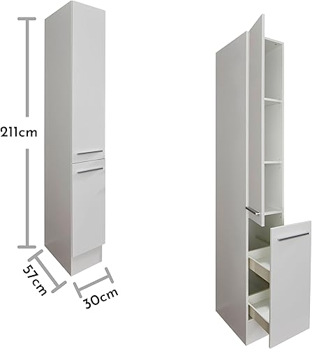 Stella Trading Jazz 8 Armoire Moderne pour Pharmacie de Cuisine, en Blanc Brillant, spacieuse, avec Beaucoup d'espace de Rangement, Bois d'ingénierie, Apothekerschrank