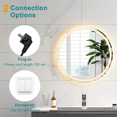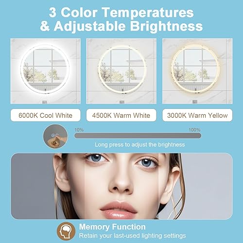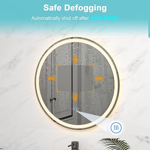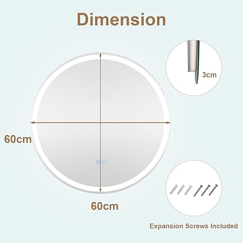 LIFEZEAL Miroir Mural Rond, Miroir de Salle de Bain avec Fonction Anti-Buée, Fonction Mémoire, Miroir Mural LED, Luminosité Réglable, Interrupteur Tactile (60 x 60 cm 1)