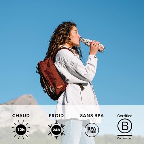 Qwetch - Bouteille Isotherme Giverny Mimosa 500ml - Gourde Nomade Inox - 24h Froid et 12h Chaud - Etanche, Sans BPA & Réutilisable