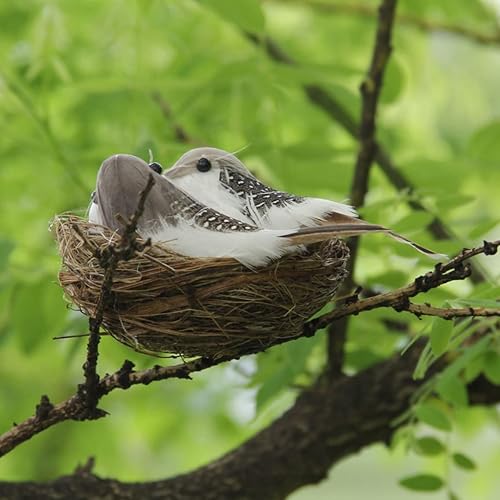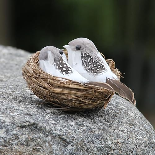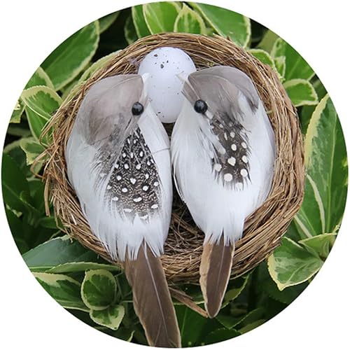 Liummrcy Oiseaux à Plumes réalistes, Oiseaux artisanaux artificiels, décoration de Jardin à Maison Oiseau réaliste Artisanal avec œuf de nidi
