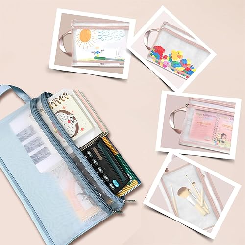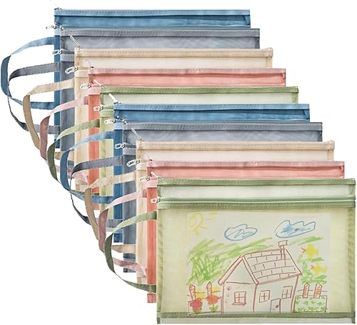 Lot de 10 pochettes en maille à fermeture éclair, format A4 coloré en nylon double couche, ensemble de blocs de construction pour jouets pour enfants, sacs respirants à fermeture éclair transparente