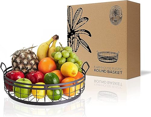 Regal Trunk & Co.- Corbeille à fruits à 3 niveaux - Paniers en fil de fer | Support de panier métallique| Corbeille à fruits à plusieurs niveaux pour comptoir ou suspendu | Cadre métallique