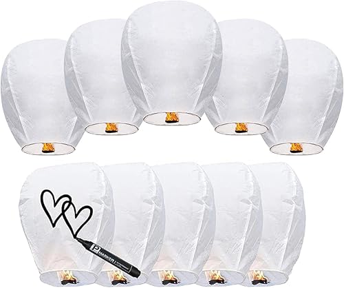 Lot de 10 lanternes chinoises en papier biodégradables et résistantes au feu pour commémorer les vœux du Nouvel An, des week-ends et des vacances