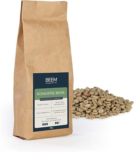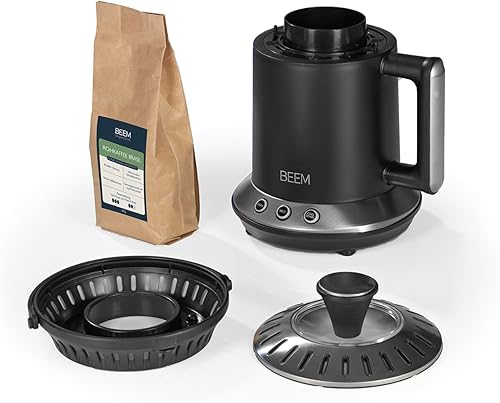 BEEM ROAST-PERFECT Torréfacteur avec 200 g de café brasil (grain entier non torréfié) | 2 degrés de torréfaction réglables [acier inoxydable, verre borosilicaté, noir]