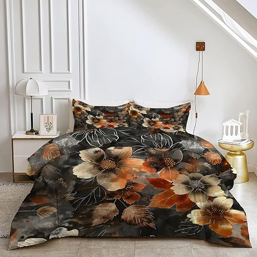 FamHarbor Couette 260x240 cm Été, Couette Legere Motif Floral Rétro, Couette Imprimée Plantes avec 2 Taies d'oreiller pour Lit 2 Personnes, Romantique Edredon Couette sans Houss Lavable, Ed11