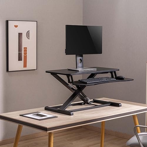 WilTec Support PC Assis Debout 80x40cm Réglable Hauteur Ergonomique Ordinateur Portable Écran Bureau Poste de Travail Flexible