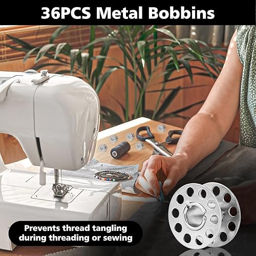 QOUBNIC 36 Pièces Machine a Coudre Accessoires, Canettes de Couture Bobines Métalliques pour Machines à Coudre avec Boîte de Rangement Compatibles Multi-Marques