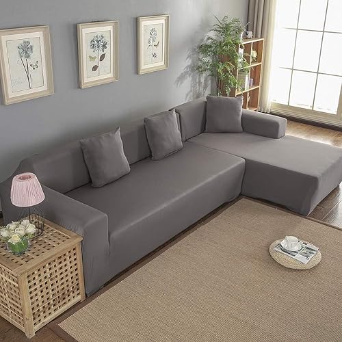Housse de Canapé d'angle, Couverture de Canapé en Forme de L Protection du Sofa Universelle Extensible Revêtement de Canapé en Tissu élastique 3 Places + 2 Places
