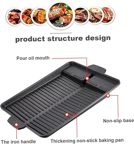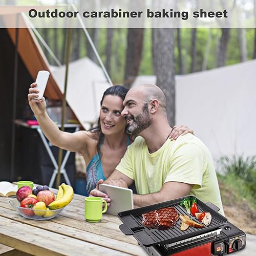 Plaque de grill 14.57x10.24 pouces BBQ Rack Grill Grill Aluminium Grill Aluminium Plaque d'allonge avec poignée pour la cuisinière à gaz de camping, plaque de cuisson électrique, plaquette en fonte,