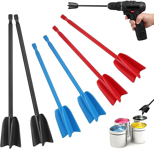 Zocipro Lot de 6 Mélangeurs époxy pour Perceuse, Palettes de Mélangeur de Peinture Réutilisables, Outil de Mélange pour Mélanger la résine époxy, la Peinture en Céramique (Rot, Blau,Schwarz)