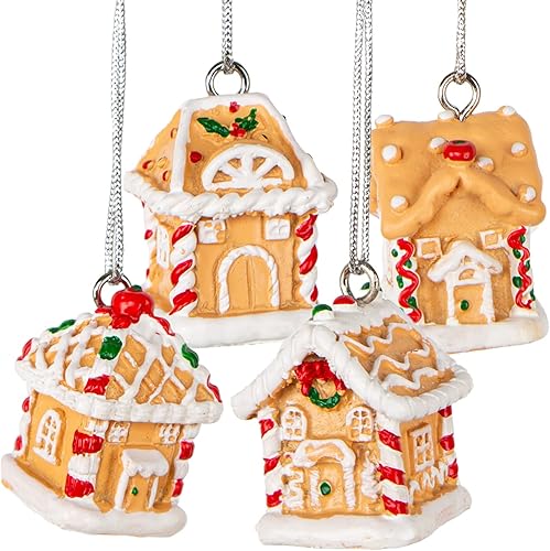 Logbuch-Verlag Lot de 4 petits pendentifs pour sapin de Noël - Maison en pain d'épice à suspendre - Décoration de Noël miniature - 3 cm