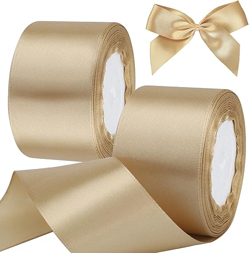 Ruban de satin Or champagne décoratif 5 cm x 22 m, pour décoration de cadeaux, bouquets de fleurs, mariages, travaux manuels, emballages et bricolage.