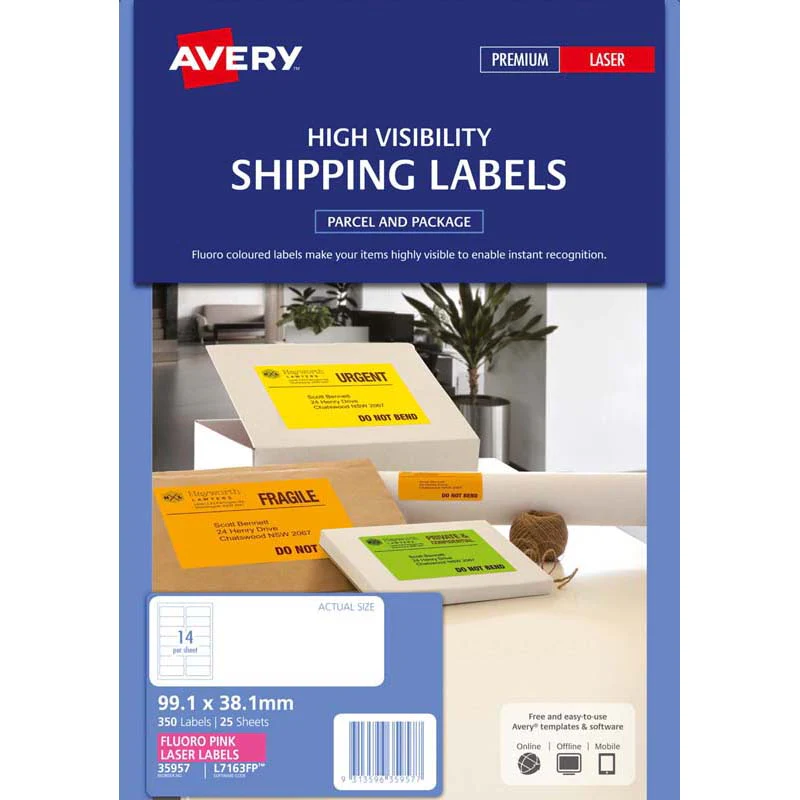 Avery Shipping Label Fluoro Pink 16 Up 25 Sheets Laser 99.1x34mm