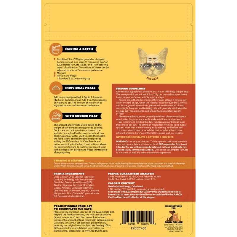 EZComplete Raw Cat Food or Cooked Premix Make A Homemade Cat Food Diet. All Natural