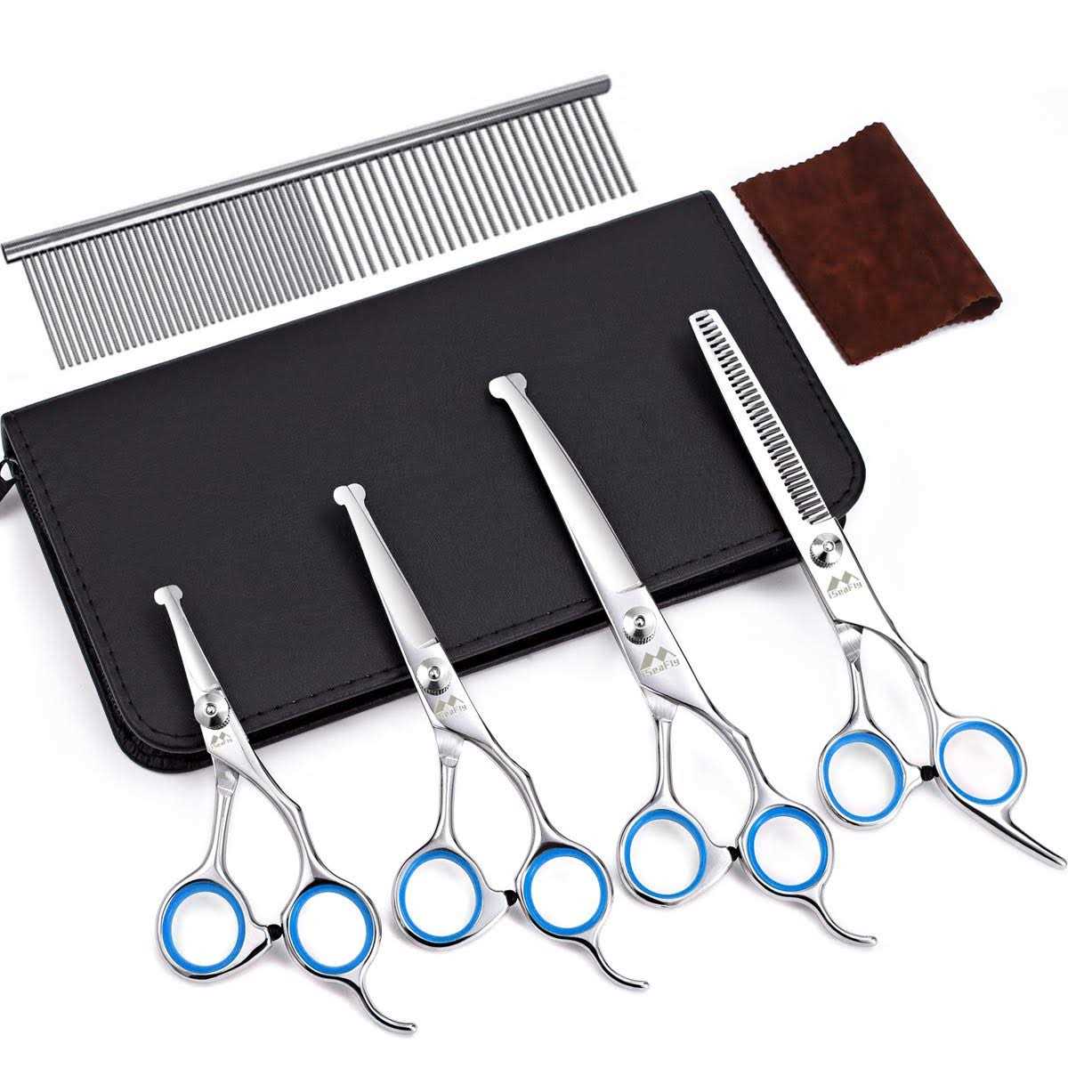 iSeaFly Dog Grooming Scissors Kit with Round Tip Set of 5 Cat Dog Scissors