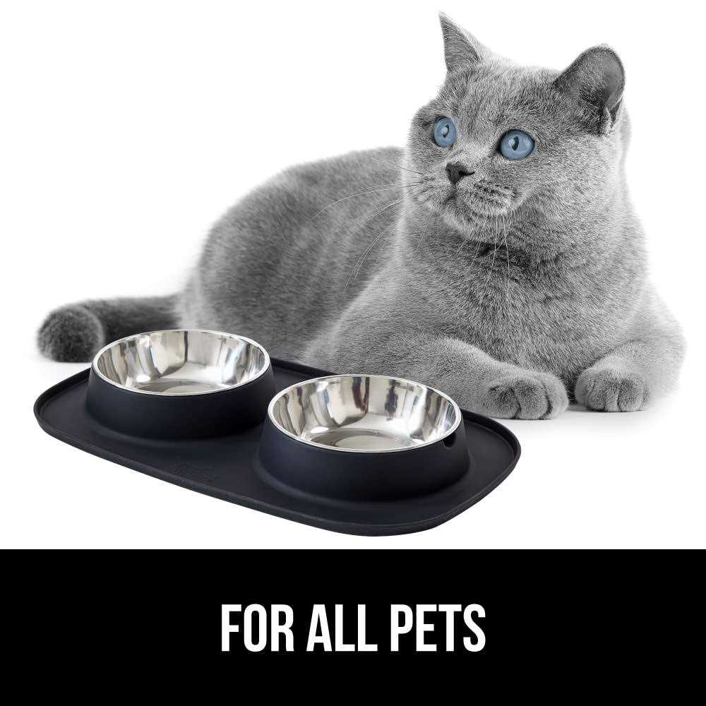 Gorilla Grip 100% Waterproof BPA Free Cat and Dog Bowls Silicone Feeding Mat Set