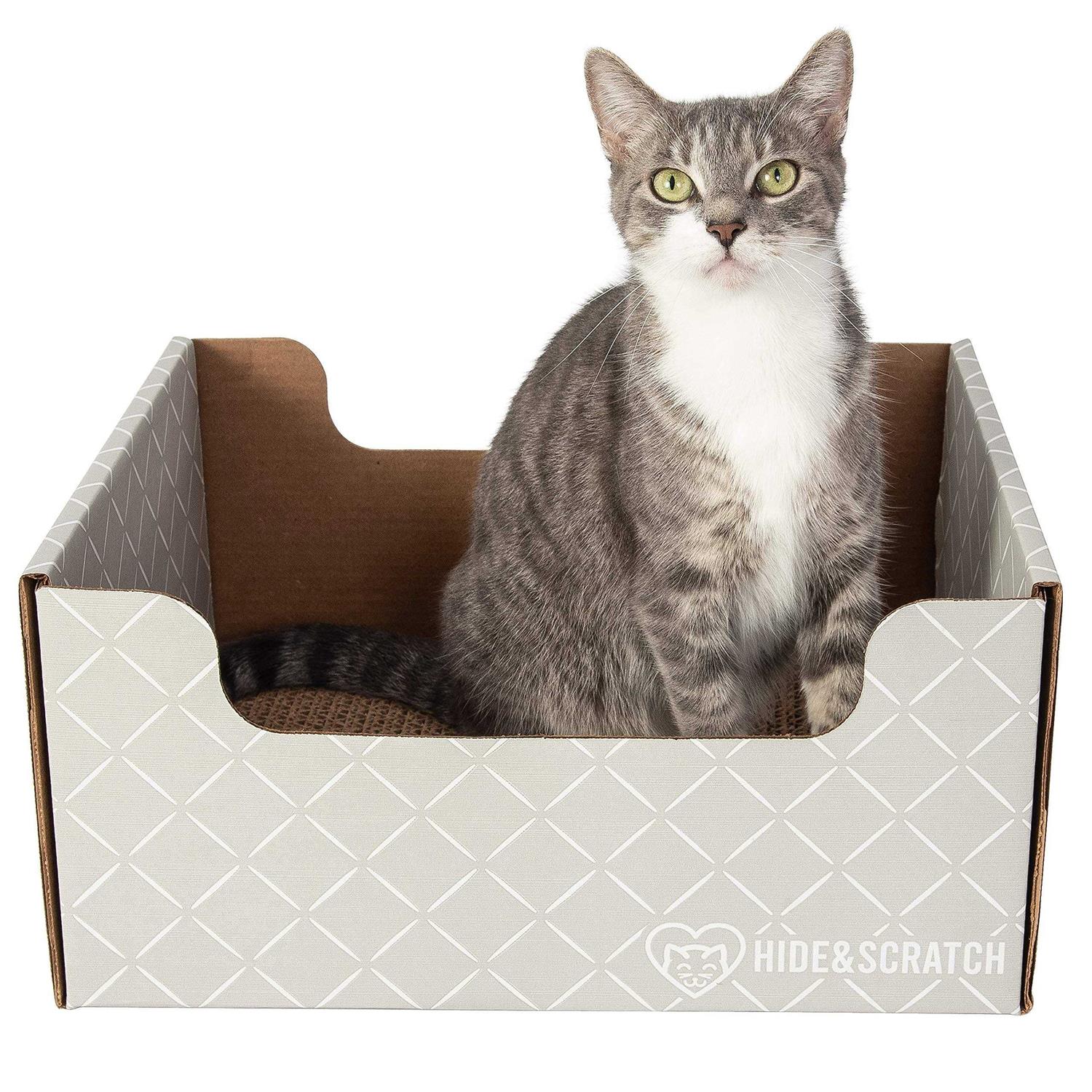 Hide & Scratch Extra-Large Heavy Duty Cardboard Cat Scratcher and Lounger Box with Refillable Scratch Pad