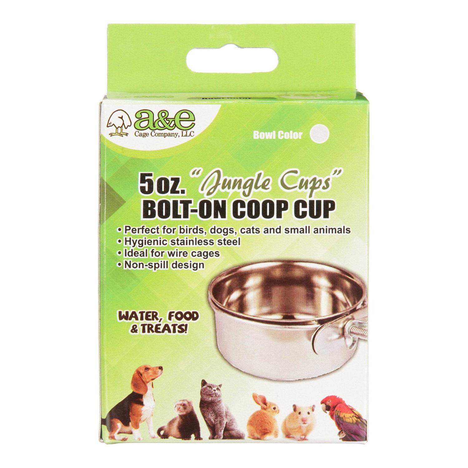 A&E Cage 5oz Stainless Steel Coop Cup with Bolt Hanger
