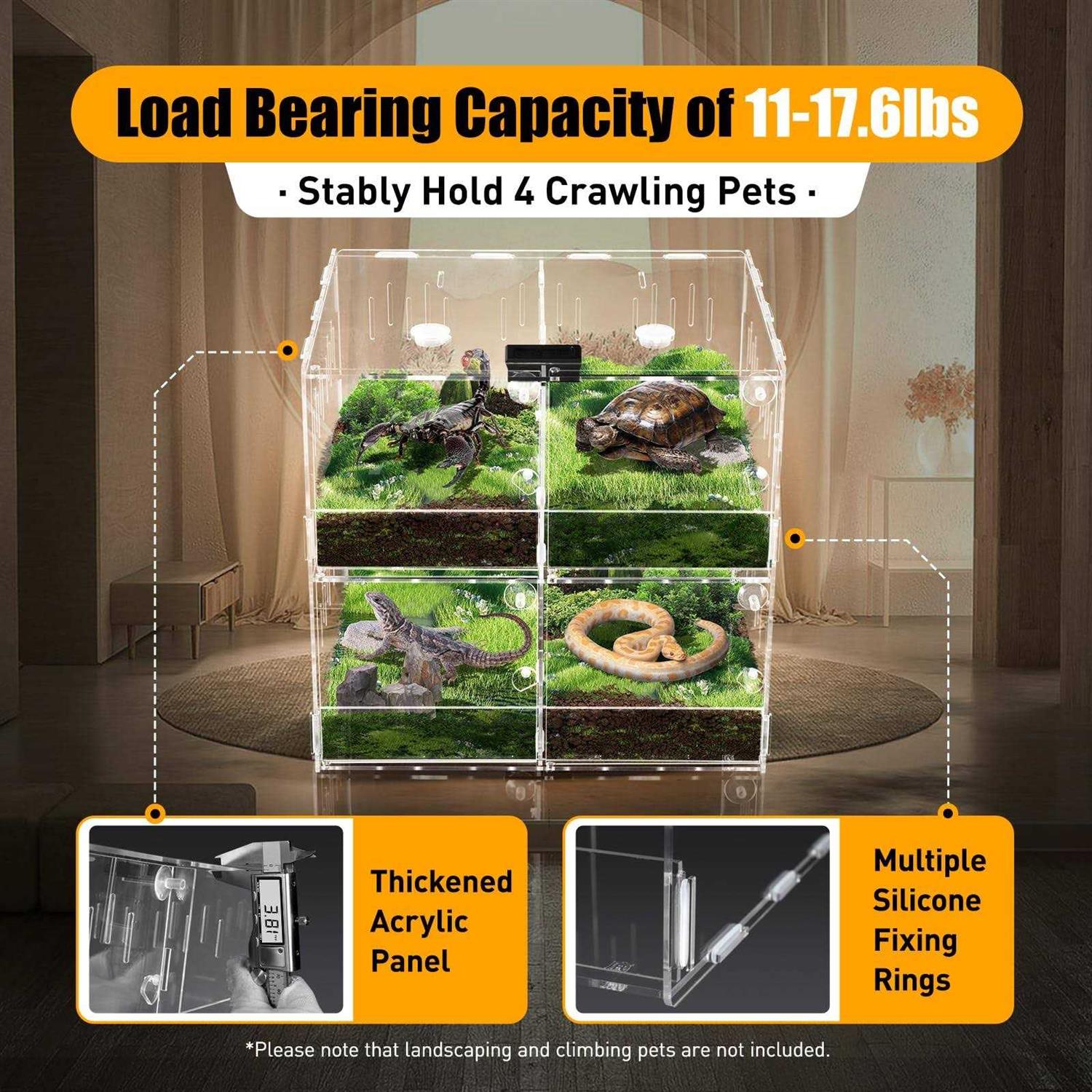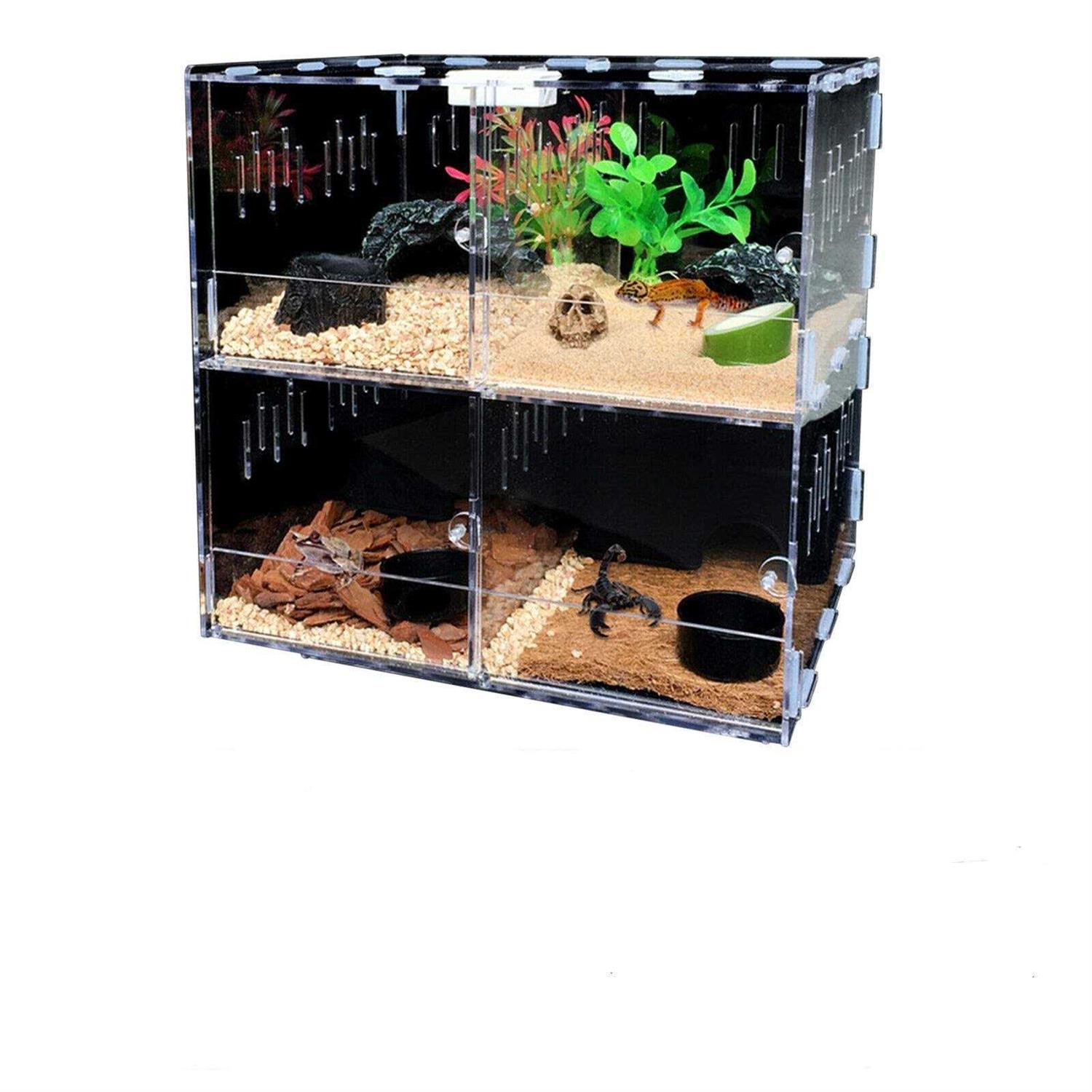 Reptile Terrarium Cage,4 Grids Reptile Cage Enclosure Box Tarantula Insect Scorpion