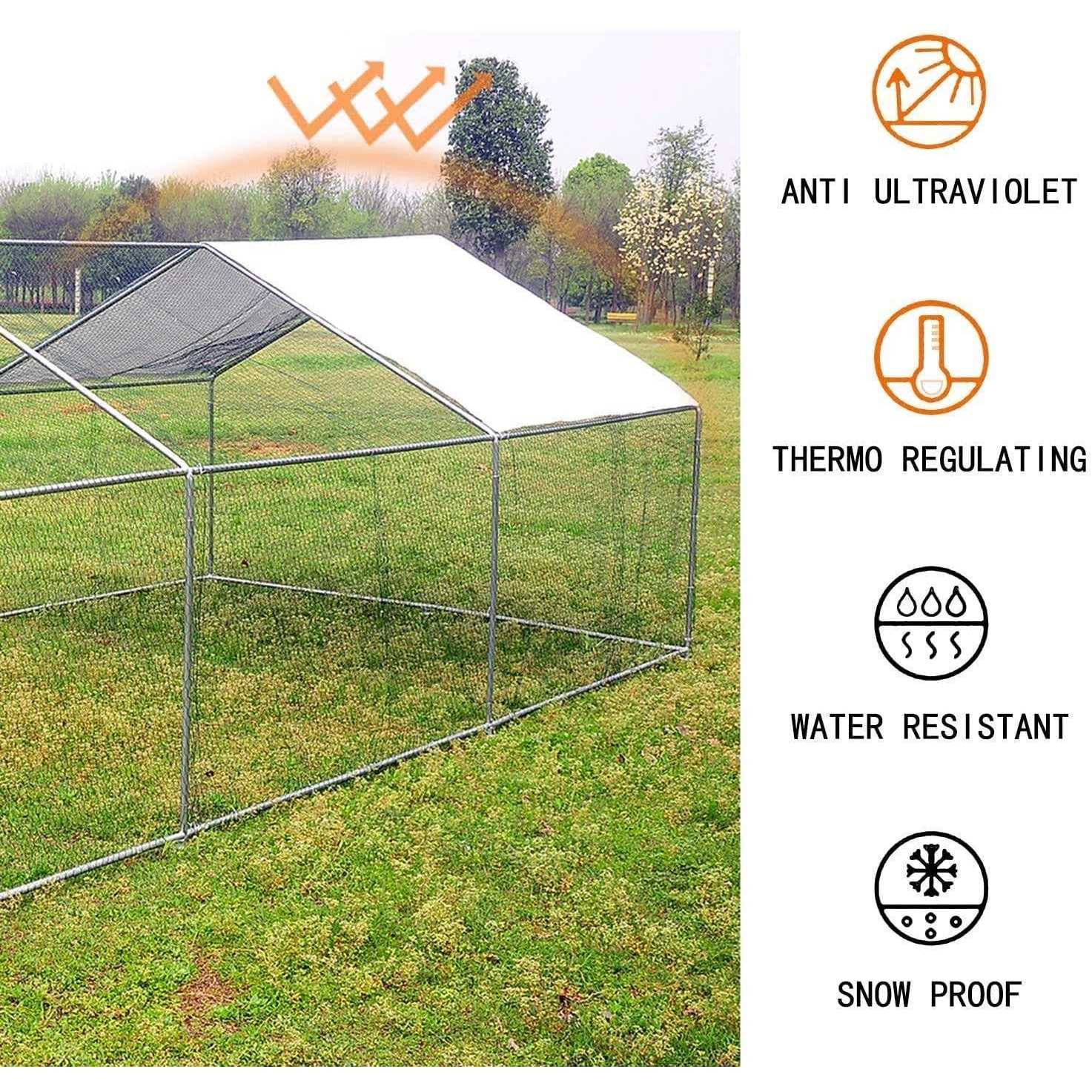 Carmyra Large Chicken Coop Walk-in Metal Poultry Cage House Rabbits Habitat Cage Spire Shaped Coop with Waterproof and Anti-Ultraviolet Cover