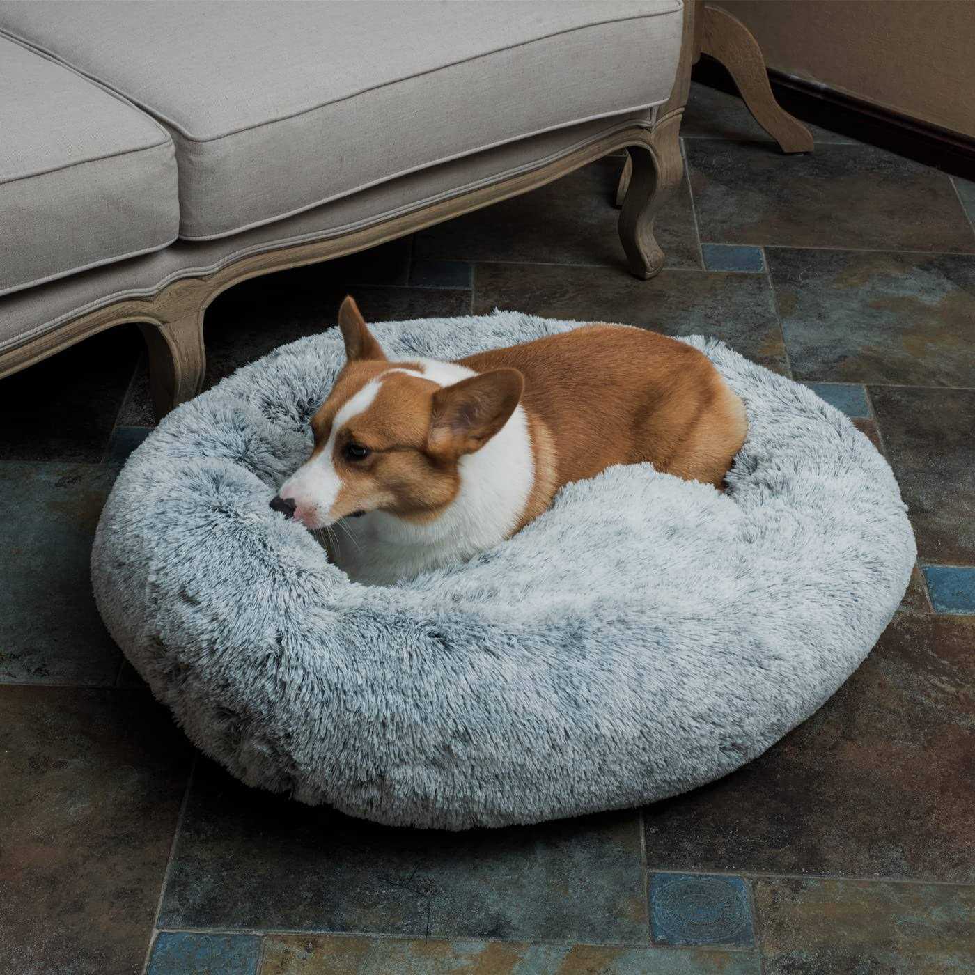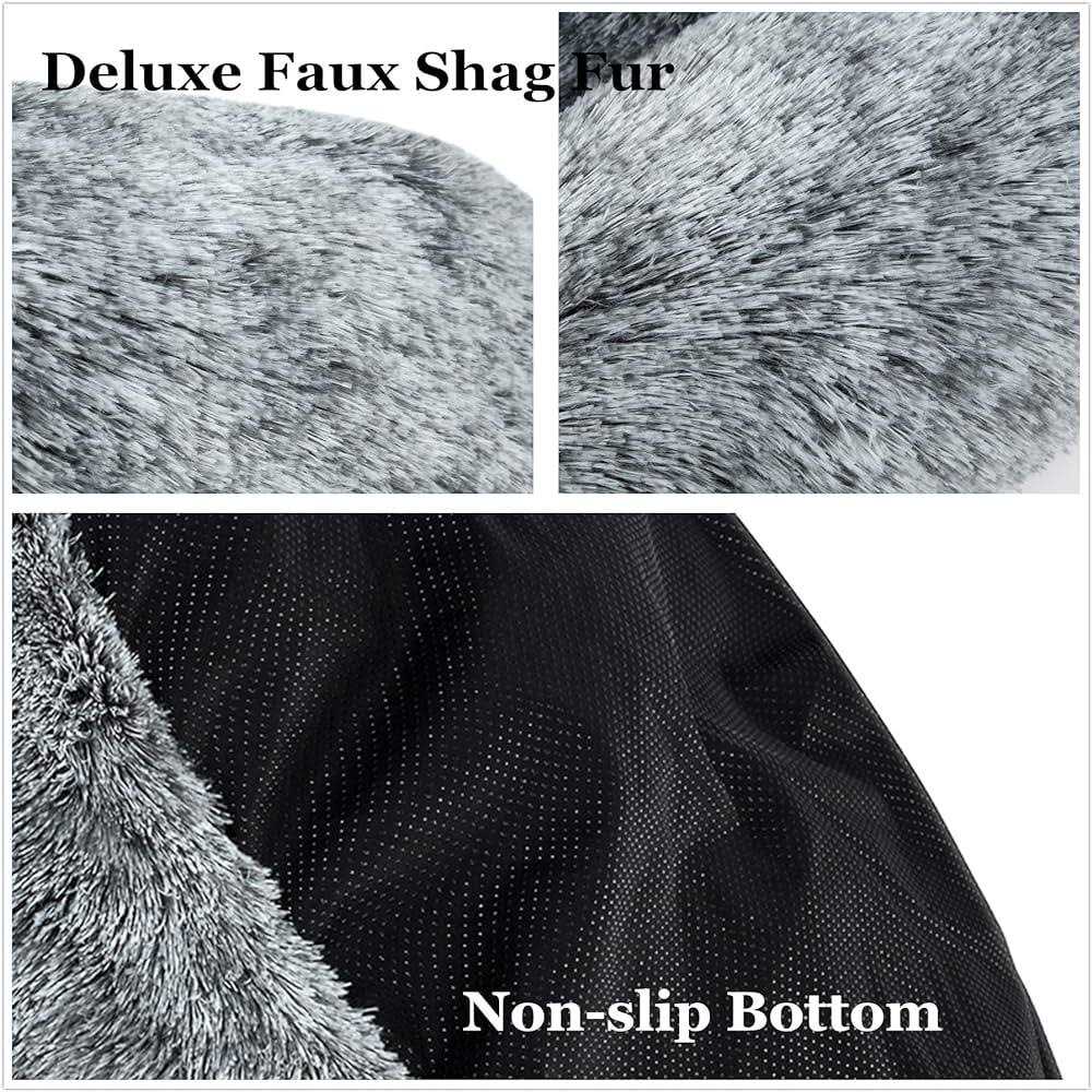 coohom Oval calming Donut cuddler Dog Bed,Shag Faux Fur cat Bed Washable Round Pillow Pet Bed for Small Medium Dogs