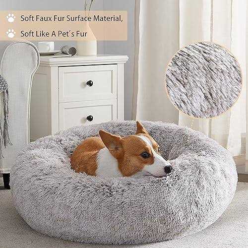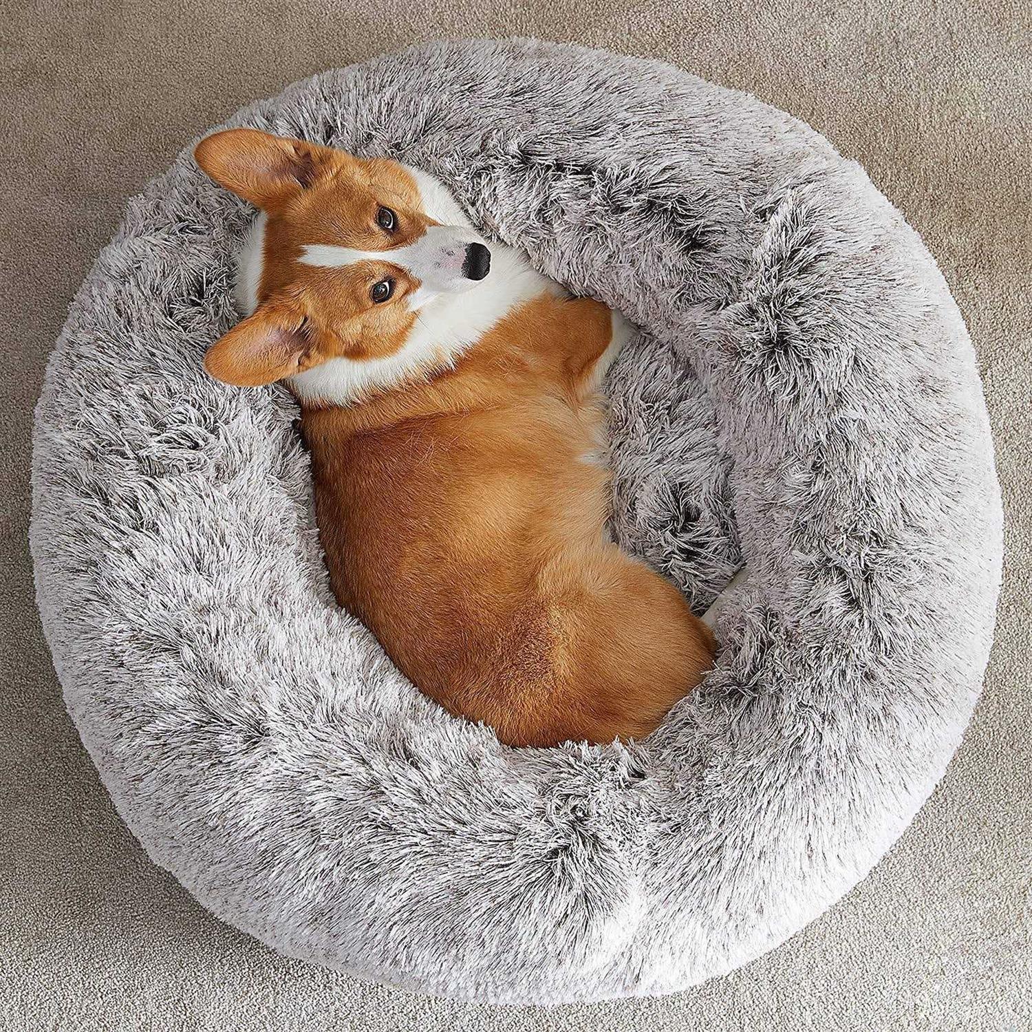WNPETHOME Calming Dog Bed & cat Bed,Small Dog Bed Donut Faux Fur Anti-Anxiety Dog Bed Dog Pet Bed for Small Dogs