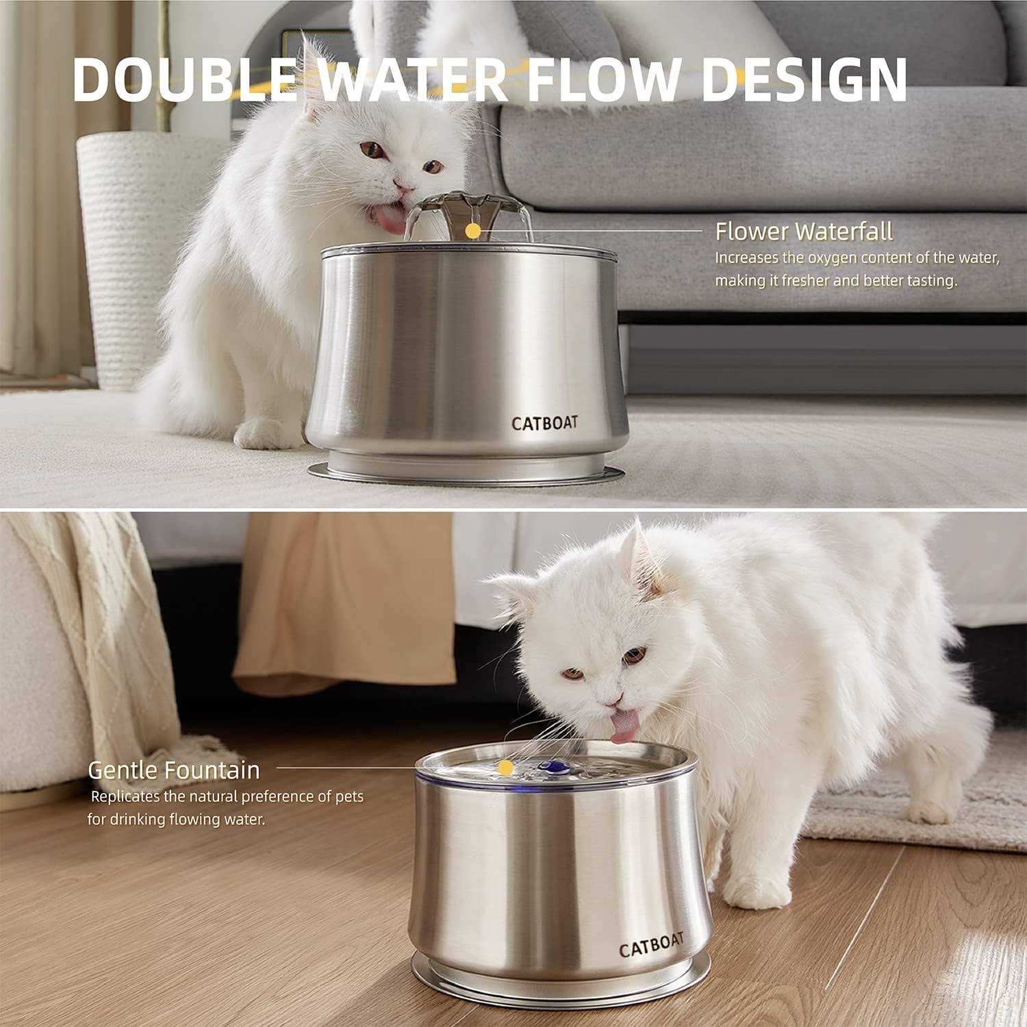 CATBOAT Cat Water Fountain Stainless Steel 84oz/2.5L for Pets Inside