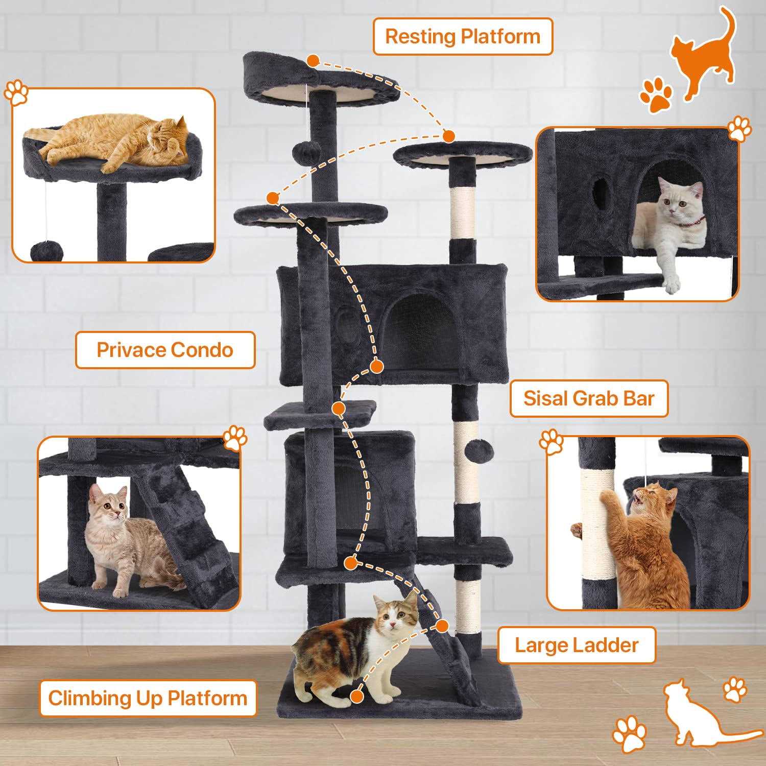Niamvelo 70-in Cat Tree Tower Furniture Cat Condo with Scratching Post for Indoor Cats