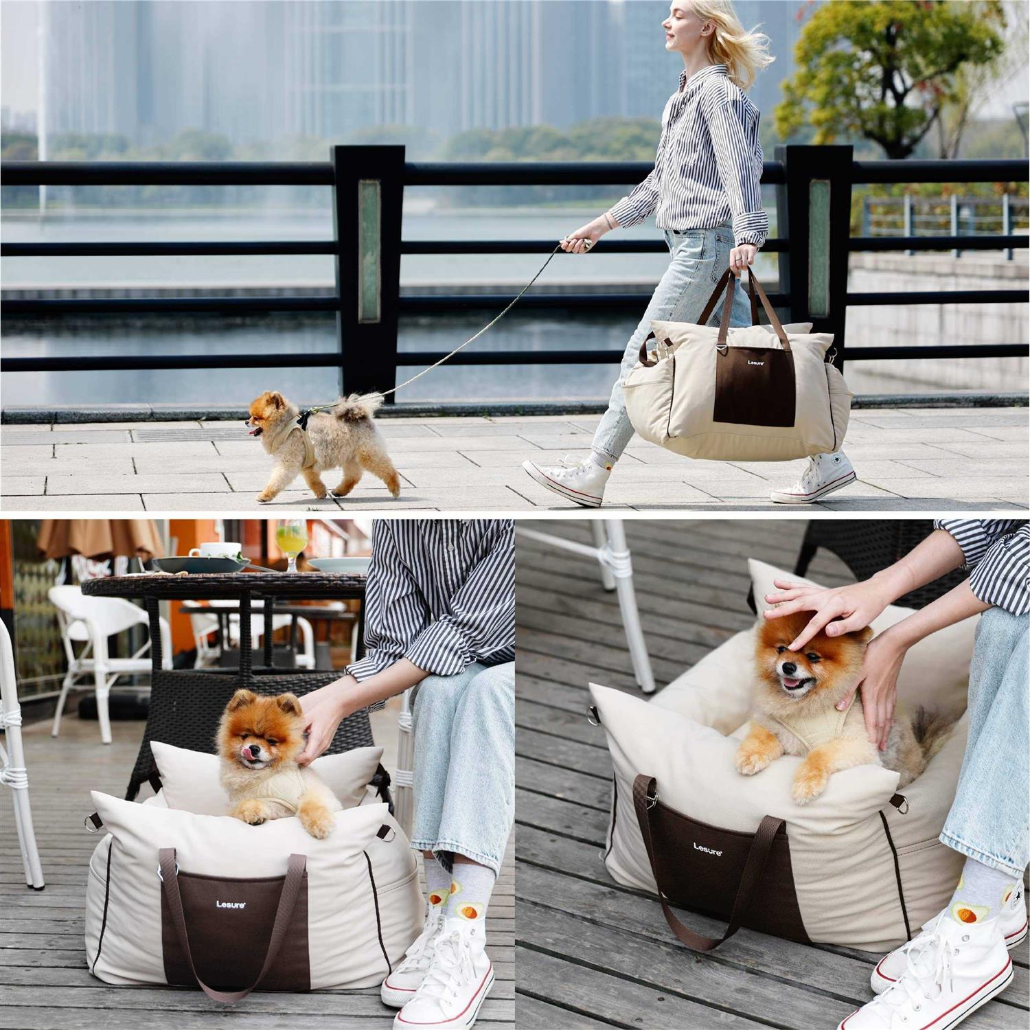 LE SURE Lesure Small Dog Car Seat for Small Dogs Waterproof Dog Booster Seat for Car with Storage Pockets, Clip-On Safety Leash and Thickened Memory Foam