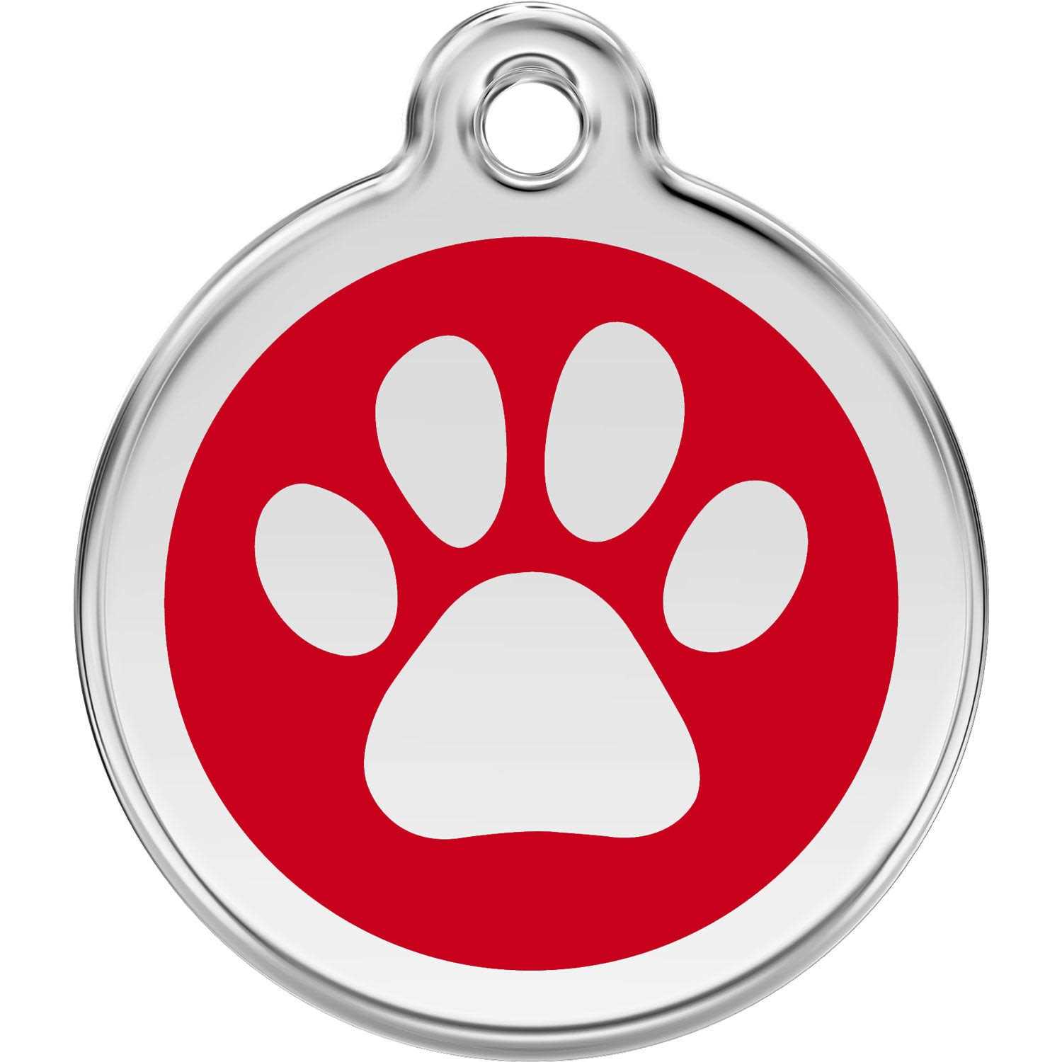 Red Dingo Paw Print Enamel Stainless Steel Dog ID Tag