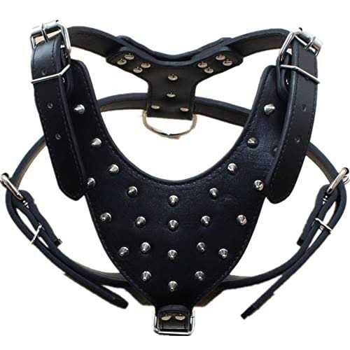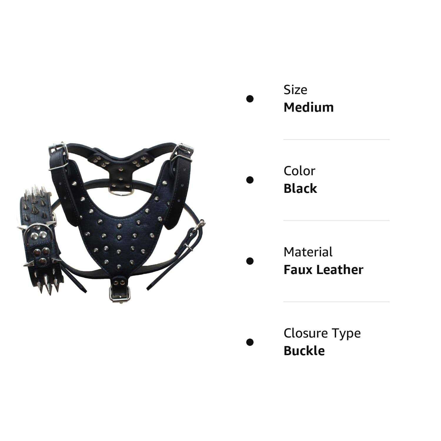 Haoyueer Leather Spiked Studded Medium & Large Dog Collars Harnesses Matching Set for Pit Bull,Mastiff