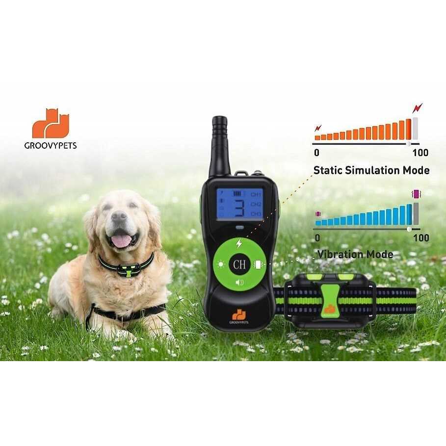 Groovypets Three-Dog Kit 800 Yard Waterproof Long-Life Rechargable Remote Dog Training Shock Collar System