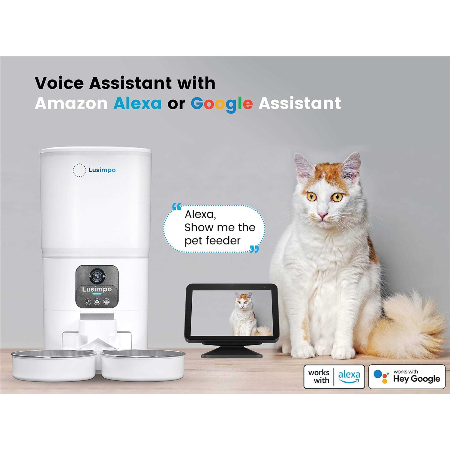 LUSIMPO Automatic Dual Pet Feeder with 1080P HD Camera for 2 Dogs/Cats