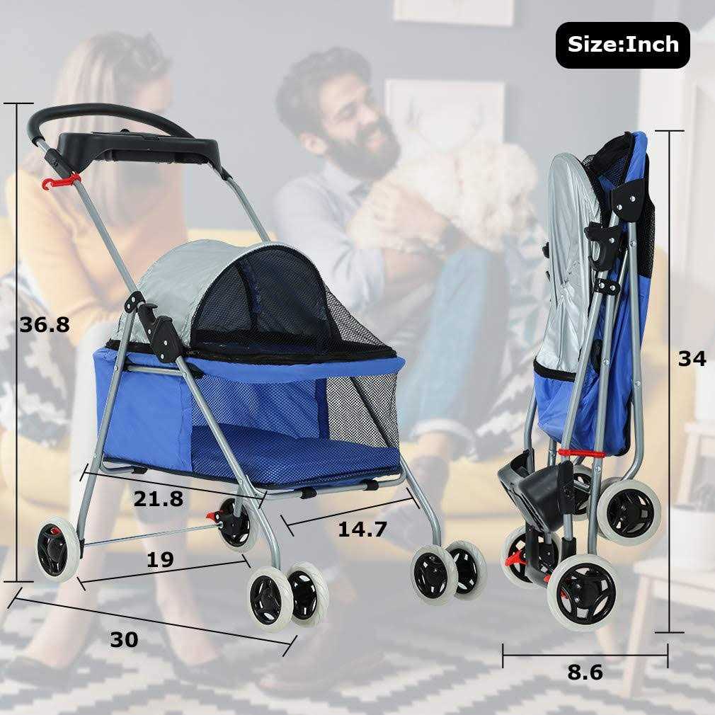 BestPet Pet Stroller 4 Wheels Posh Folding Waterproof Portable Travel Cat Dog Stroller with Cup Holder