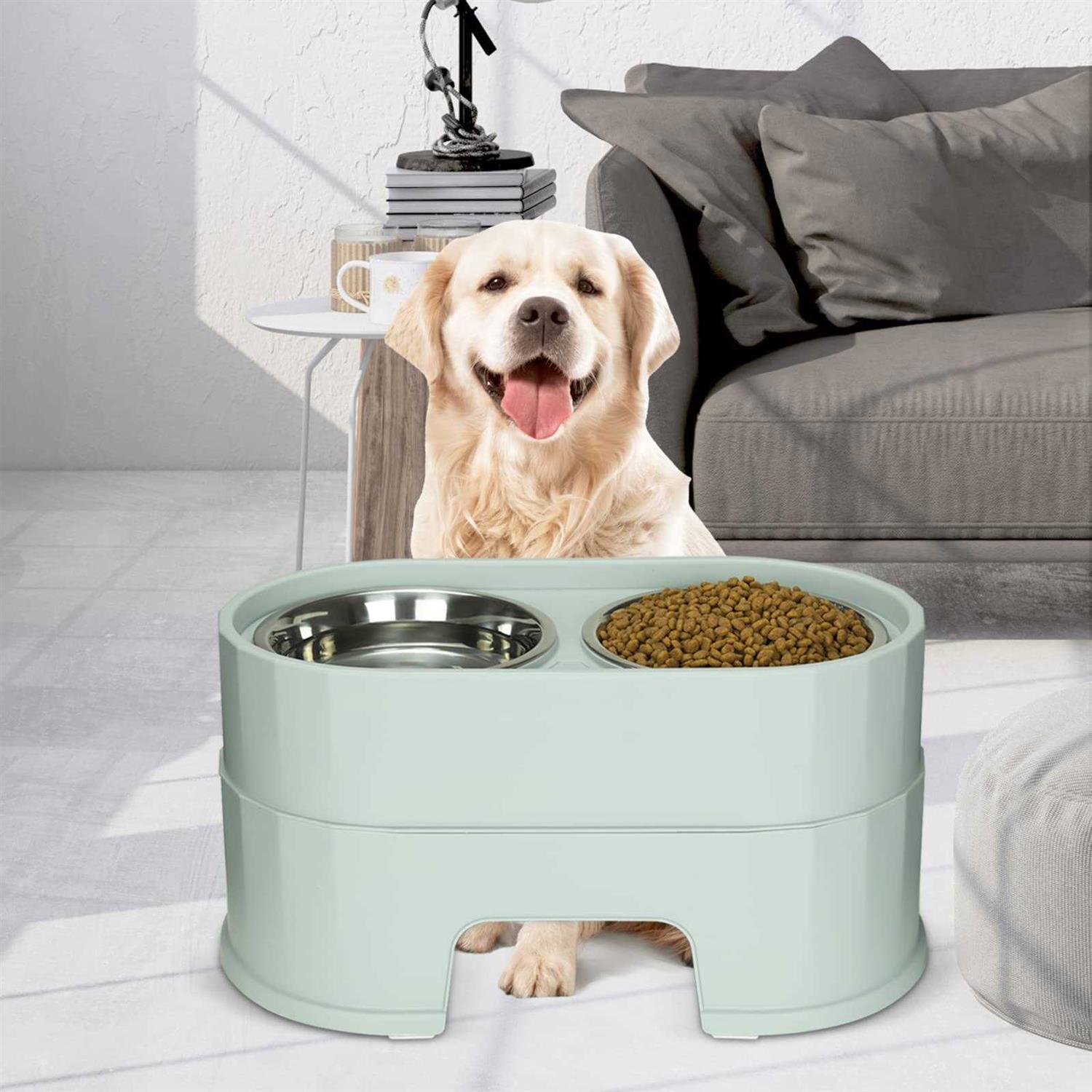 MASOcAT Raised Dog Bowls,Stainless Steel Dog Food Dish and Pet Water Bowls,Elevated Height Adjustable Double Bowl with Stand