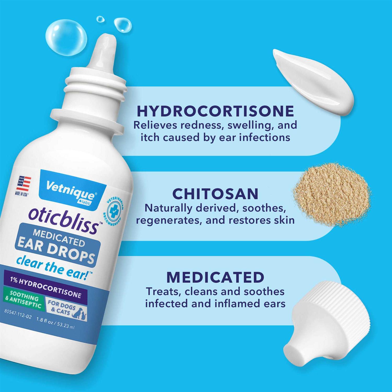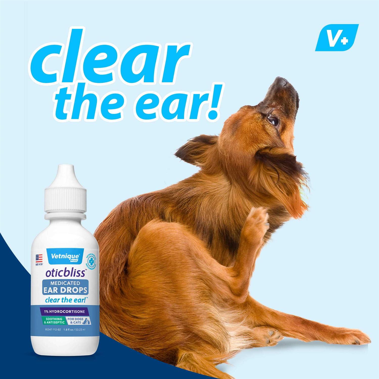 Vetnique Labs Oticbliss Medicated Ear Drops for Dogs & Cats with Hydrocortisone