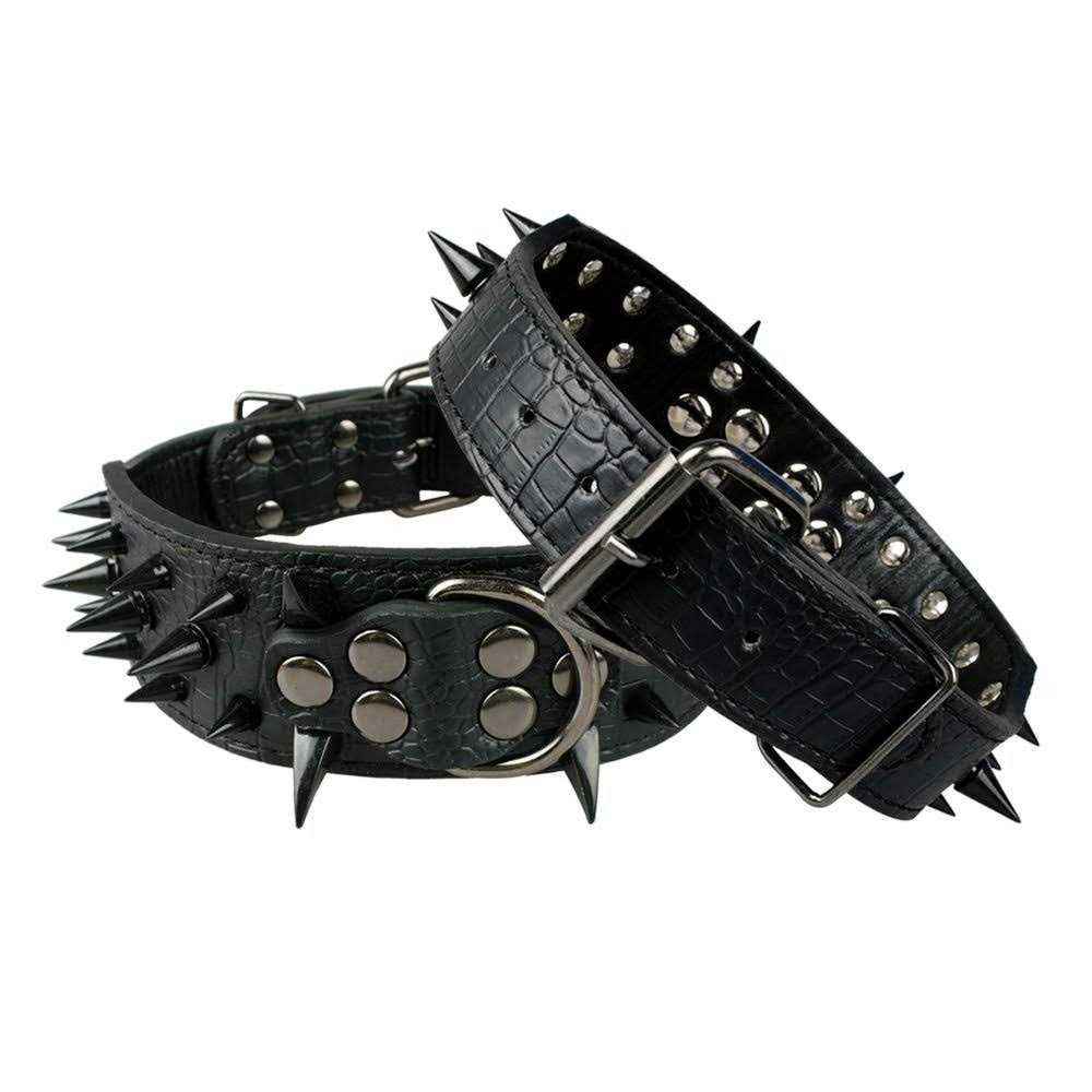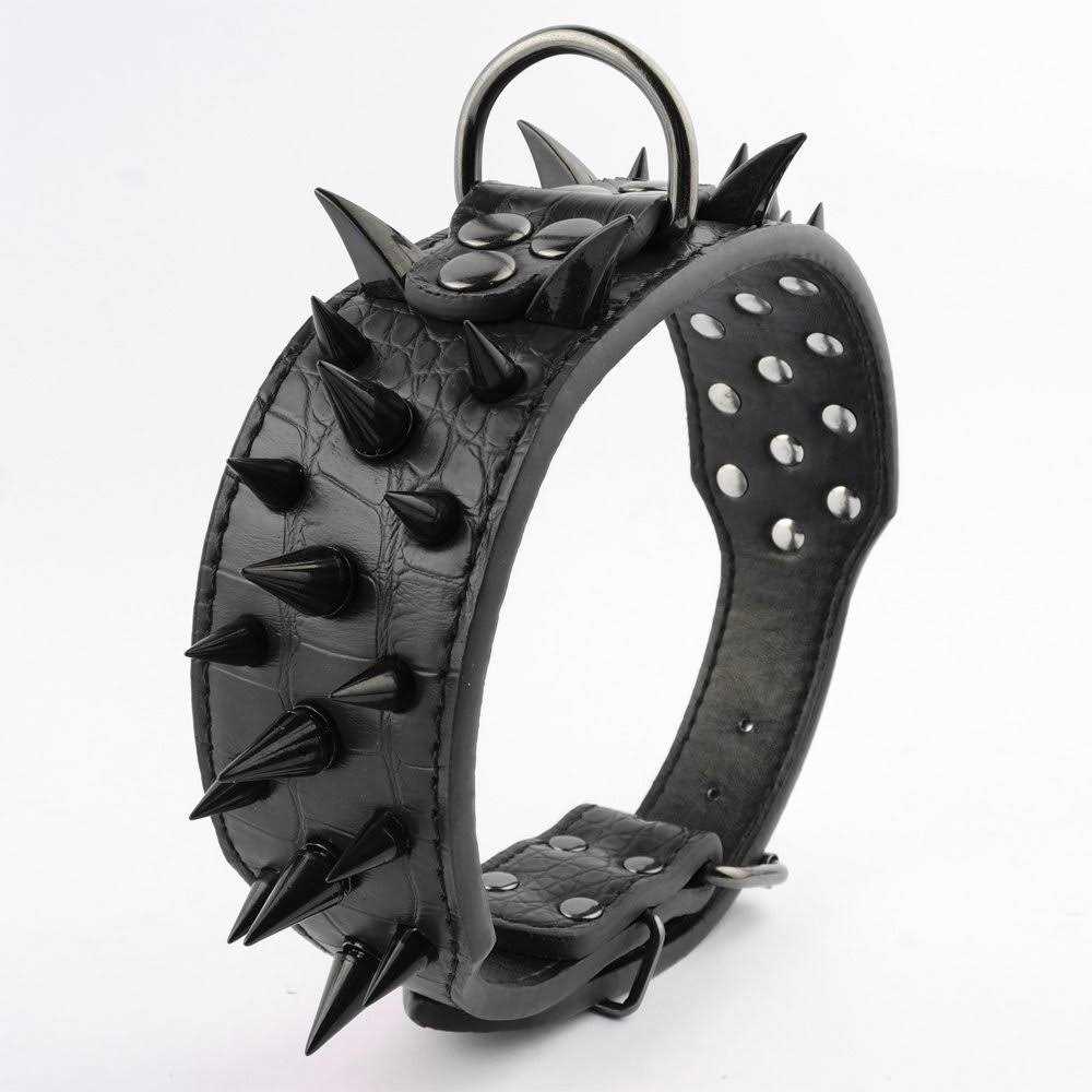 Berry Pet Sharp Spiked Studded Dog Collar Stylish Leather Dog Collars 2 Inch in Width Fit for Medium & Large Dogs