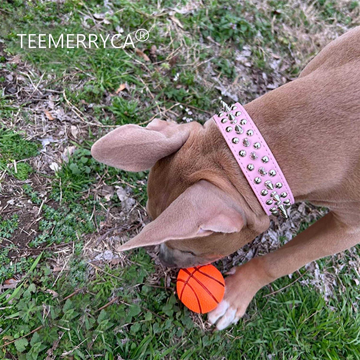 Teemerryca Adjustable Leather Spiked Studded Dog Collars with a Squeak Ball Gift for Small Medium Large Pets Like Cats/Pit Bull/Bulldog