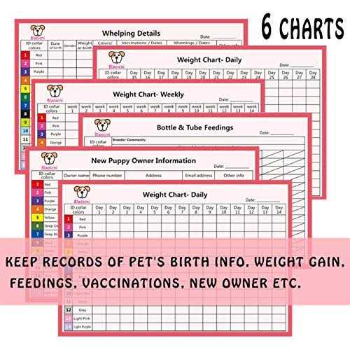 14PCS Puppy ID Collar Identification Soft Nylon Adjustable Breakaway Safety Whelping Litter Collars for Newborn Pets with Record Keeping Charts